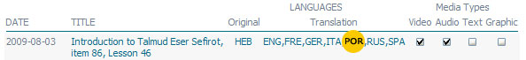 | 19/07/2009 | Introduction to Talmud Eser Sefirot, item 48, Lesson 36 |