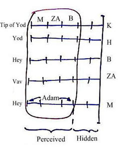 What this means is that we can only attain Bina, Zeir Anpin, and Malchut, where we participate. Thus, we have five parts in the picture, the tip of the Yod, Yod, Hey, Vav, Hey, and when we speak of the Yod-Hey-Vav-Hey, we refer only to the Kelim Bina, Zeir Anpin, and Malchut, in which we have a clear attainment. What we perceive in them is called, Adam. This is why we have five kinds of Adam, five degrees of Adam.