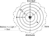 1. The Creator’s essence (Atzmuto), which we avoid discussing because it is utterly unattainable. The point where we begin our research is called the “Thought of Creation”. At this stage we only exist potentially – in the Creator’s thought, before He started acting. The final result is embedded in the initial thought, because the desire to achieve the result necessitates the action.
