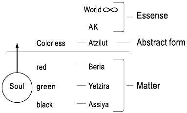 This is the secret of the World of Atzilut about which “The Book of Zohar” says: “He, the Light, and His Essence are One”. In accordance with this, the light of the World of Atzilut is defined as white light. However, concerning the Kelim of the Worlds of Beria, Yetzira, and Assiya, the light passing through them changes and darkens. Consider, for example, that the light becomes the red light of the Sefira Bina in the World of Beria, the green light of Tifferet in the World of Yetzira and the black light of Sefira Malchut in the World of Assiya, respectively.