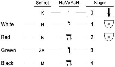 7. In “The Book of Zohar” these Ten Sefirot, HuBTuM, are called by the names of four colors: white, red, green, and black.