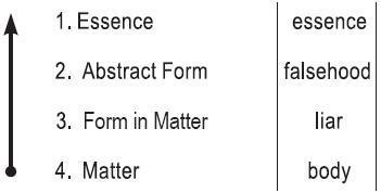 If we move outside from within in our analysis, we find that the essence, abstract form, form, and matter are dressed on one another. This is how we perceive any object in our world.