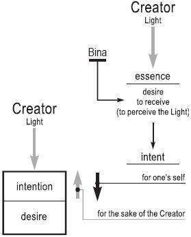 This desire is neither good nor bad; it is the essence of Creation. Because of the breaking of the vessels, it received from Bina the intention on how to use the desire: for oneself alone or for the Creator. That superstructure appears above the desire. Therefore there are the desire, the light or the source of the light (the Creator), and the intentions on how to use that desire. That is all.