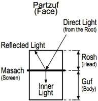 Figure no. 7: While the Partzufis incapable of receiving all the light, the reflected light must remain outside the Partzuf. This is called “surrounding light.”
