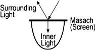 Between the Rosh (Head) and the Guf (Body) stands the Masach (Screen). Just as a selectively permeable membrane allows only some molecules to seep through it, the Masach screens out the light, allowing into the Guf only as much light as the Rosh decided it could receive with the intention to bestow, while repelling the remainder of the light. That way, the Masach functions as a guard, making sure the degradation sensed immediately prior to the restriction will not return.