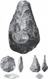 One such effort was changing our “personal microclimate,” our immediate surroundings, by covering our skins with those of animals, whose fur provided better protection against the elements than our own. And instead of relying on our (clearly insufficient) physical strength to catch our food, we developed increasingly sophisticated tools to assist us in hunting, as well as for protecting ourselves against prey animals. Today there is unequivocal evidence that primates, some mammals, and even birds use tools such as rocks, twigs, and branches to assist them in acquiring food and in fighting. But systematic tool and weapon production, such as carving stones and bones into spears, is a uniquely human ability (Image no. 6).