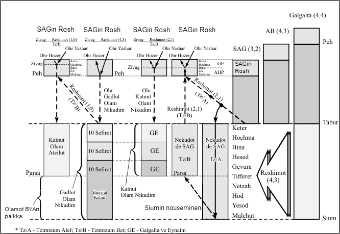 SAG on syntynyt Reshimotista Gimel de Hitlabshut - Bet de Aviut. Galgalta ja AB, jotka työskentelevät itsekkäiden vastaanottohalujen kanssa, eivät voi laskeutua Taburin alapuolelle, koska ne tietävät siellä olevista paljon voimakkaammista haluista.