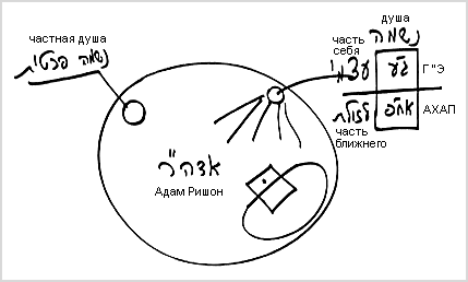 Когда мы были подобны одному телу, когда мы были Адамом Ришон, каждый был разделен на себя самого и часть, относящуюся к ближнему. Все мы, как клетки одного организма. Каким образом клетка или какой-либо орган может быть связан со всем телом? В нем есть свой разум, свой мозг, программа, согласно которой он соединяется с остальными и обеспечивает их тем, что им нужно. Поэтому мы говорим, что каждая часть подобна всему телу, и сохраняет все его особенности.