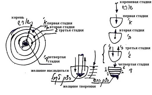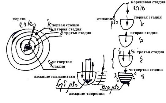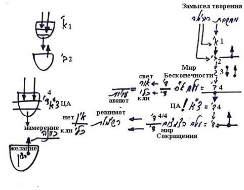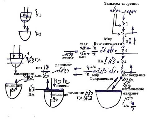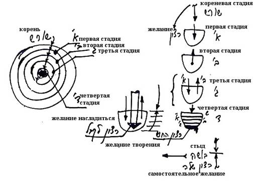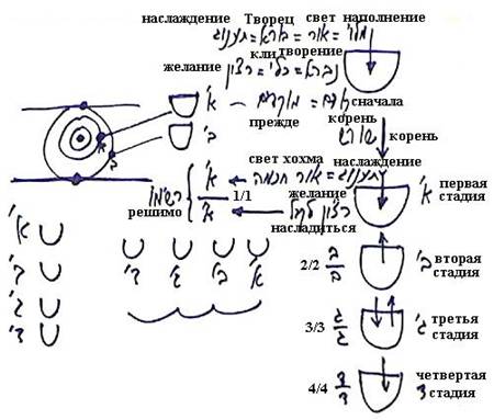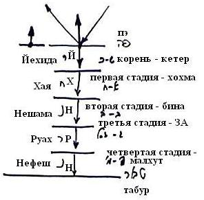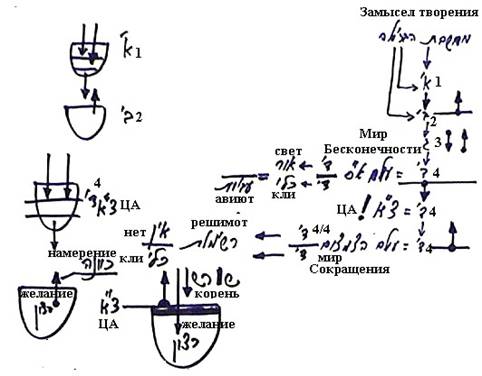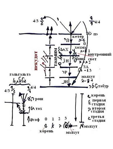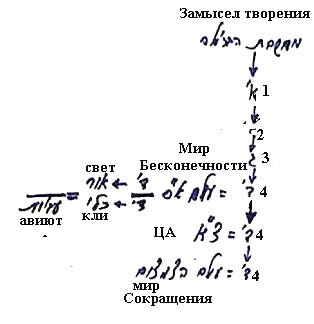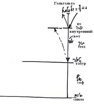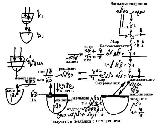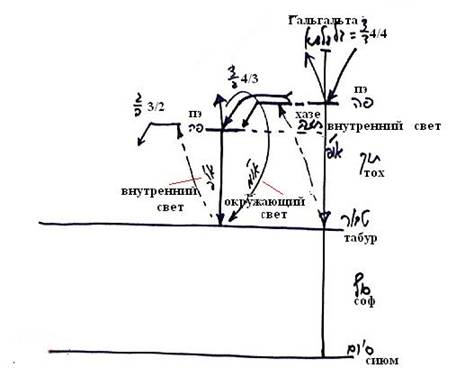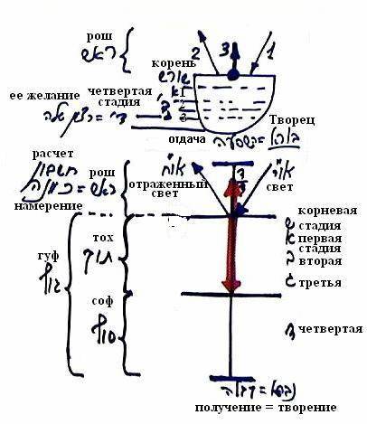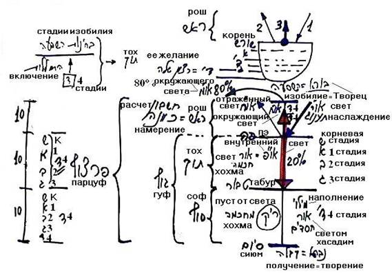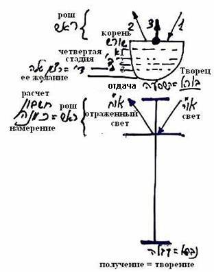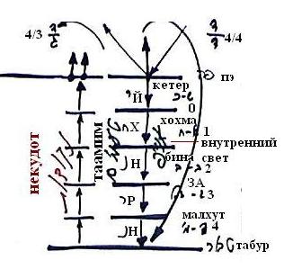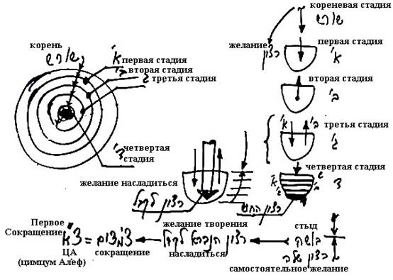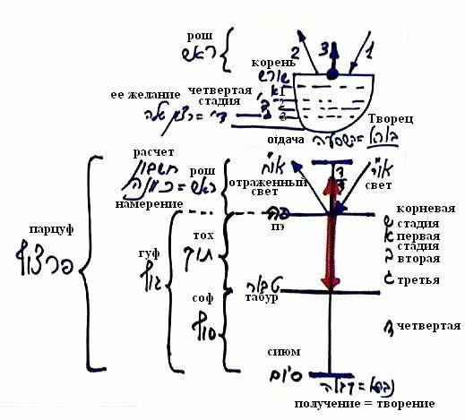 Затем снова происходит столкновение внутреннего и окружающего светов и, как результат этого, исторжение, изгнание света до уровня пэ и решение работать с решимот, меньшими, чем прежде. Эти решимот называются 3/2.