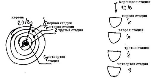 Иначе говоря, если малхут мира Бесконечности, стоящая после корневой, первой, второй и третьей стадий, хотела работать со всем своим авиютом, со всем что к ней приходит, то сейчас она работает не со всем авиютом, достигающим ее после предыдущих стадий, а с половиной или с четвертью и так далее. Так как малхут мира Бесконечности получает свой авиют, свое желание в предыдущих стадиях (третьей, второй, первой и корневой), поэтому сейчас, когда она освободилась от максимальной стадии далет, она принимает на себя работу третьей стадии. То есть ее впечатление от работы в предыдущих стадиях, от света, приходящего к ней, соответствует третьей стадии, а не четвертой. И это то, что происходит здесь в первом парцуфе, который все закончил: получил столько, сколько смог получить ради отдачи, прекратил свои действия и вернулся в прежнее состояние.