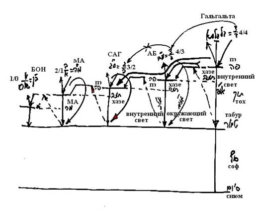 С этими решимот, с этим решением, он распространяется и называется этот парцуф МА. – это его гематрия. Его пэ находится на уровне хазе дэ-САГ, снова происходит битуш и исчезновение света.
