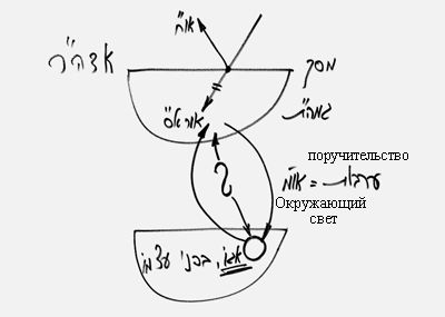 То есть поручительство – это не просто психологическое ощущение, что у меня есть все необходимое, это Окружающий свет. Творец, как свидетель дает мне гарантию. Он дает моему эго, сотворенному Им самим, определенное наполнение, в результате чего эго начинает якобы успокаиваться. Окружающий свет позволяет мне быть выше эгоистических расчетов.