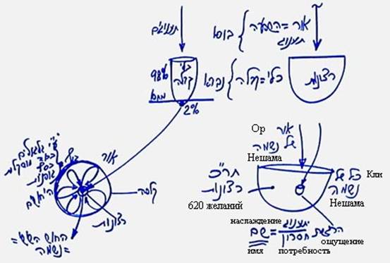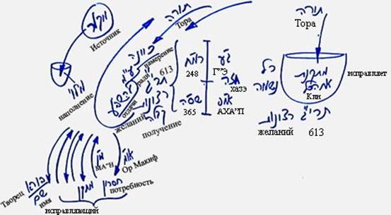 Какое сложное предложение! Если прочитать его кому-то на улице, он скажет: «Прекрасно, все понятно». Но это то, что мы должны делать: чтобы пройти весь этот процесс, мы должны вызвать на себя влияние Высшего света, чтобы он исправил нас, как свет, возвращающий к источнику. Мы выполним таким образом 613 эйцот (советов) относительно каждого своего желания, и придем к состоянию, когда наполним их 613 пкудин (светами) – наполнением, которое положено этим желаниям.