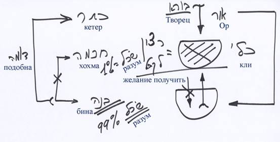 Если бы я использовать свой разум для приобретения свойства отдачи ради раскрытия Высшего света, света хохма, я действительно развил бы свой разум на 99 процентов. А пока мне хватает одного процента разума. В обычной жизни разум развивается рядом с желанием для его обслуживания, чтобы оно могло получать насколько только это возможно. Но тогда разум развивается лишь на один процент. А когда он развивается рядом с желанием отдавать, чтобы уподобиться Творцу, войти в духовное, тогда он развивается на остальные 99 процентов.