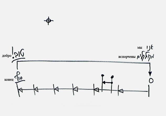 во зле, в