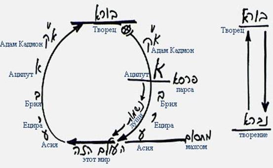 Место создания душ называется миром Ацилут, граница между миром Ацилут и прочими мирами называется парса. Этот мир отделен от Высших духовных миров, и граница между ними называется махсом. Наше существование в этом мире идет неосознанно в течение тысячелетий до того момента, когда мы начинаем духовно подниматься.