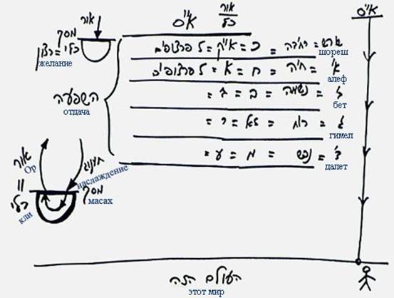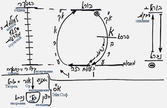 Эта связь всегда взаимная в каждом состоянии и на каждой ступени. Творец создал реальность, которая спускается вниз, отдаляясь от Творца до уровня, называемого этот мир, через миры Адам Кадмон, Ацилут, Брия, Ецира и Асия.