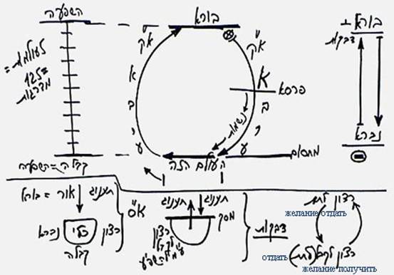 Существует два пути, два способа отношений между Творцом и творением. Кроме Творца и творения нет ничего в мироздании. А их взаимоотношения мы изображаем, как Творца, находящегося вверху, а творение, находящееся внизу, согласно их авханот (особенностям), согласно их свойствам. Есть путь сверху вниз, и второй путь снизу вверх. Происходит своеобразный диалог. Существует связь и она взаимная. И не только эта связь двухсторонняя, но, как сейчас будет объяснять Бааль Сулам, течение всей реальности, процесс ее развития, происходит как сверху вниз, так и снизу вверх.