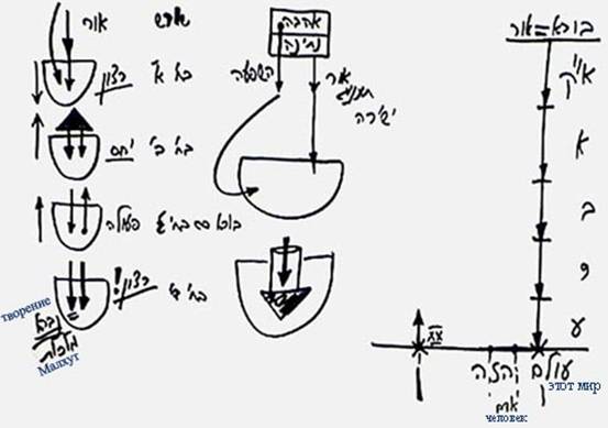 На уровне этого мира реальность также проходит некий процесс, а потом вновь возвращается к тому состоянию, в котором была создана изначально в те же миры – Асия, Ецира, Брия, Ацилут и Адам Кадмон. Мы поднимаемся тем же путем. А разница от спуска сверху вниз заключается в следующем. Этот спуск происходил до нашего рождения. Сначала мы были каплей семени, затем прошли путь развития в чреве матери, и родились на этот свет. Вся эта подготовка в мирах происходит до нашего рождения, нам подготовлено особое место, называемое наш мир. Миры в духовном – это место, где мы можем впоследствии существовать. Построение душ начинается от мира Ацилут и ниже. Души спускаются в наш мир, а затем поднимаются по ступеням миров.