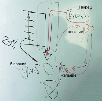Затем это желание, наполненное светом Бесконечности, решает снова принять в себя 20% от того