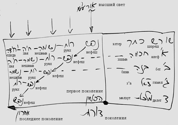 Затем приходит свет нешама, который тоже спускается в том же порядке.