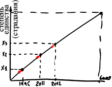 Речь идет об очень простых вещах, которые можно отобразить на наглядной диаграмме. Каждый день мы должны достигать всё большего единства между нами. За 6000 лет нам нужно объединить все наши желания, а сегодня от нас требуют сплочения определенной степени – скажем, X2. В 2012 году требование повысится до степени X3, и если мы не выполним его, то испытаем страдания в той же самой мере, из-за своего несоответствия Природе.