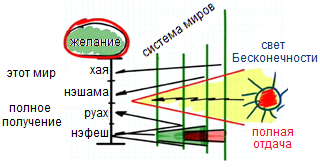 Само желание – это просто желание насладиться, получить наполнение, которое изменяется и развивается под воздействием света из источника, мира Бесконечности, проходящего через систему миров.