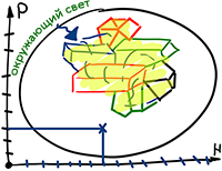 Возможно, на примере структуры кристалла будет легче понять, как свет проходит через всех и растекается по всем осям. Это обусловлено полным взаимным соответствием наших свойств. Разумеется, каждый кристаллик обладает собственной внутренней структурой.
