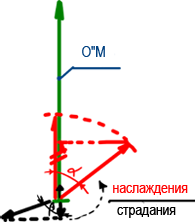 Если же я направлен в обратную сторону – не совсем в противоположную, а под некоторым углом, то согласно косинусу угла Творец нейтрализует мне эту силу, которой я противоположен Ему. И выходит, что я в любом случае получаю от Него ответную реакцию – но отрицательную. Эта отрицательная реакция также является результатом сочетания Его силы и моей. И потому в итоге она разворачивает меня в правильном направлении – с помощью страданий.