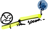 Пускай левая часть рычага имеет длину метр, а правая – скажем, миллионы или миллиарды метров. Тогда, даже надавив с силой в один грамм, ты перевернешь мир.