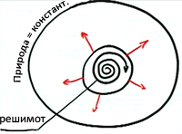 Итак, Природа неизменна, константна, а мы постоянно развиваемся изнутри посредством цепочки сменяющихся решимот, и наше противостояние Природе все время усиливается.