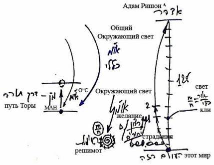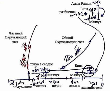 С этой точки и далее начинается свобода выбора человека, а до этого ее нет. Отсюда и далее человек может продвигаться с помощью не общего, а частного Окружающего света. И теперь у человека уже есть свобода выбора.