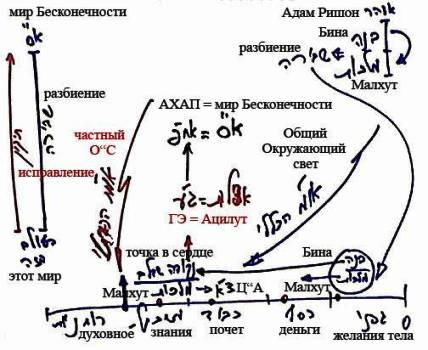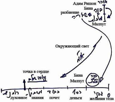 После разбиения части Адама Ришон - души падают с духовного уровня на материальный, в этот мир. И тогда у нас есть также Бина и Малхут, только обе они, находящиеся внутри человека, неисправлены.