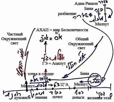 Исправление заключается в том, что, начиная его, я делаю на Малхут сокращение и развиваю точку в сердце до размера полной Гальгальты Эйнаим. Это означает, что я поднялся в мир Ацилут. И после того, как я исправил в себе все свойства Бины, я поднимаюсь и исправляю также свой АХАП – АХАП дэ-алия, тем самым поднимая себя в мир Бесконечности.
