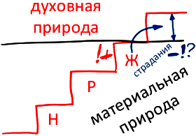 Сегодня мы находимся на ступенях материальной природы: неживой (Н), растительной (Р) и животной (Ж). Здесь мы вполне можем существовать, здесь у нас есть наука и множество других средств.