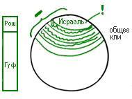 Каждый человек по-своему прав. Но вот что на самом деле происходит. Изобразим общее желание/кли всего мира и нашу часть в нем – Исраэль, которую мы обязаны исправить. Можно также представить это как рош (голова) и гуф (тело), где Исраэль – это рош.