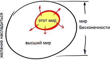 И если я не прорвусь из своих границ наружу, то как смогу узнать, что там происходит? Так мы приходим к высшему миру, существующему за пределами этого мира. Но и этот, и высший мир - это всё желание насладиться, и если объединить их вместе, то получится мир Бесконечности.