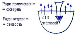 Человек исправляет 613 желаний на животном уровне. Это означает, что каждое из них обладает способностью к движению и бо́льшим весом, оно уже никак не относится к предыдущим желаниям.