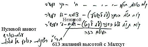 Те же 613 желаний останутся и на более высокой ступени. Иначе говоря, я буду работать в них на еще большей глубине. Занимая неживую ступень, я, в конечном счете, работаю с ними на очень малой высоте или на очень малой глубине, на нулевой стадии авиюта. Затем они раскрываются мне в первой степени авиюта, затем – во второй. Сообразно с этим, я получаю в них больший свет.
