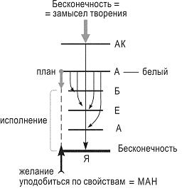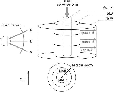 Человек, его «Я», находится внизу, в точке, наиболее удаленной от мира Бесконечности, замысла творения. И если он хочет что-либо воспринять, то должен привести в действие весь потенциальный механизм, находящийся между ним и миром Бесконечности. Если он этого не делает, то все, что находится выше его, является по отношению к нему Бесконечностью, даже самая низкая ступень мира Асия.