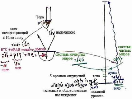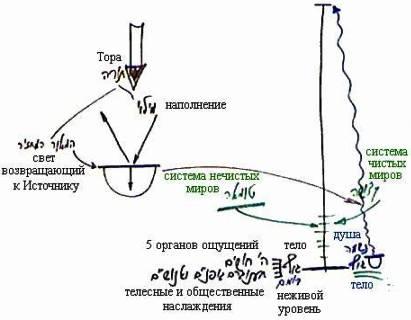 Верно. Второе тело он называет душой. Но эта душа включает в себя свое тело – кли, и свет внутри него. Кли и свет вместе называются душой – это уже духовное кли. Как уже говорилось, вначале оно находится под властью системы нечистых миров, и постепенно человек переводит его под власть системы чистых миров.