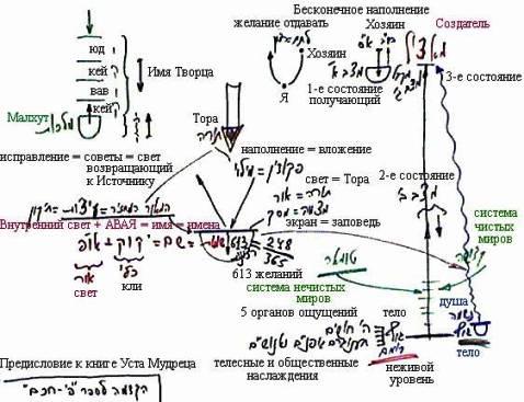 А теперь приступим к разъяснению. Уже известно, что тайна душ сынов Израиля – это тайна Божественной части свыше, причем душа нисходила по закону причины и следствия, спускаясь от ступени к ступени, пока не стала пригодной, чтобы прийти в этот мир и облачиться в грязное, материальное тело. И посредством соблюдения Торы и выполнения заповедей восходит от ступени к ступени, пока не восполнится ее объем и не станет достойной получить свое вознаграждение от Совершенного, уготованное для нее заранее, т.е. постижение святой Торы как имен Творца, является тайной 613-ти заповедей получения светов.