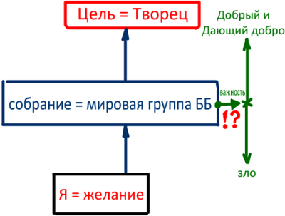Всё дело в том, на что обращен мой взор, куда устремлены мои чаяния: вверх или вниз? К Доброму и Творящему добро или ко злу? Куда я держу путь? Всё зависит от осознания важности цели, которое я перенимаю от группы.