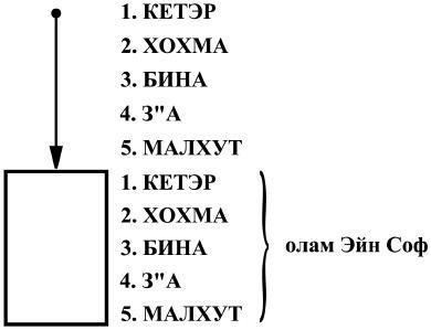 4. Все Творение в целом, любая его часть – сфира, кли, олам – состоят из десяти частей, каждая из которых делится в свою очередь на десять и так далее. Эти десять частей (отсеков, сфирот) соответствуют пяти стадиям (частям, отсекам):