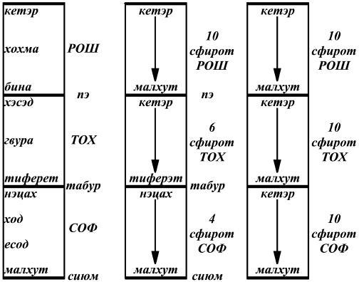 6. Поскольку любая часть Творения, как и все Творение в целом, состоит из десяти сфирот, то в зависимости от аспекта рассмотрения можно произвольно делить любую часть на 10: