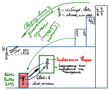 А что же происходит, если мы идем снизу вверх? Допустим, я побывал на Питерском конгрессе и достиг на нем состояния "1". Назовем его условно "кенес/конгресс Питер 2013".