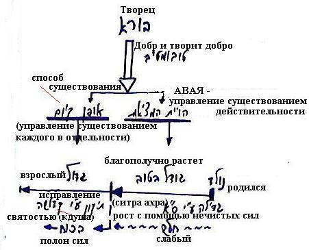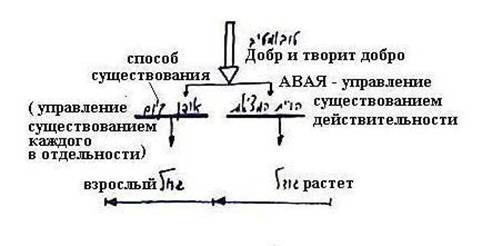 Итак, у нас есть Творец, от него исходит общее управление «Добрый и творящий добро» которое разделяется на два: АВАЯ – управление всей действительностью и формы ее существования.