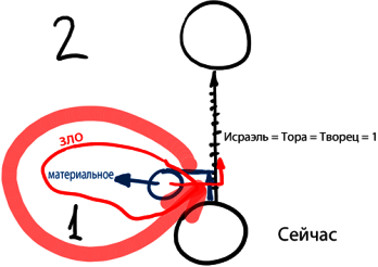 Допустим, сейчас я нахожусь в некоем состоянии (1), из которого должен двигаться дальше, к следующему (2). Чтобы проделать этот путь, надо держаться принципа единства Исраэля, Торы и Творца. Если так я направляю себя, то продвигаюсь путем ускорения.