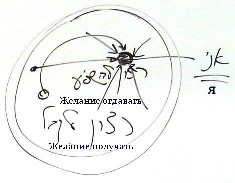 Я должен теперь прибегать к различным ухищрениям, чтобы укрепиться в этой точке. А укрепившись, я отождествляю себя с ней: я – это точка в сердце, а не желание получать. Я как бы переношу себя к ней, живу в ней – это именно то, чего я хочу. И тогда я уже начинаю видеть все остальные желания в качестве АХАПов, в качестве помех для усиления этой точки, пока она не расширяется на всю окружность. Все эти желания получать помогают мне вырастить эту точку.