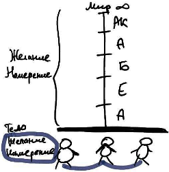 Итак, в нашем мире возникает вот эта "картина тел" – чистая иллюзия. Она делится на четыре уровня неживой, растительной, животной и человеческой природы.